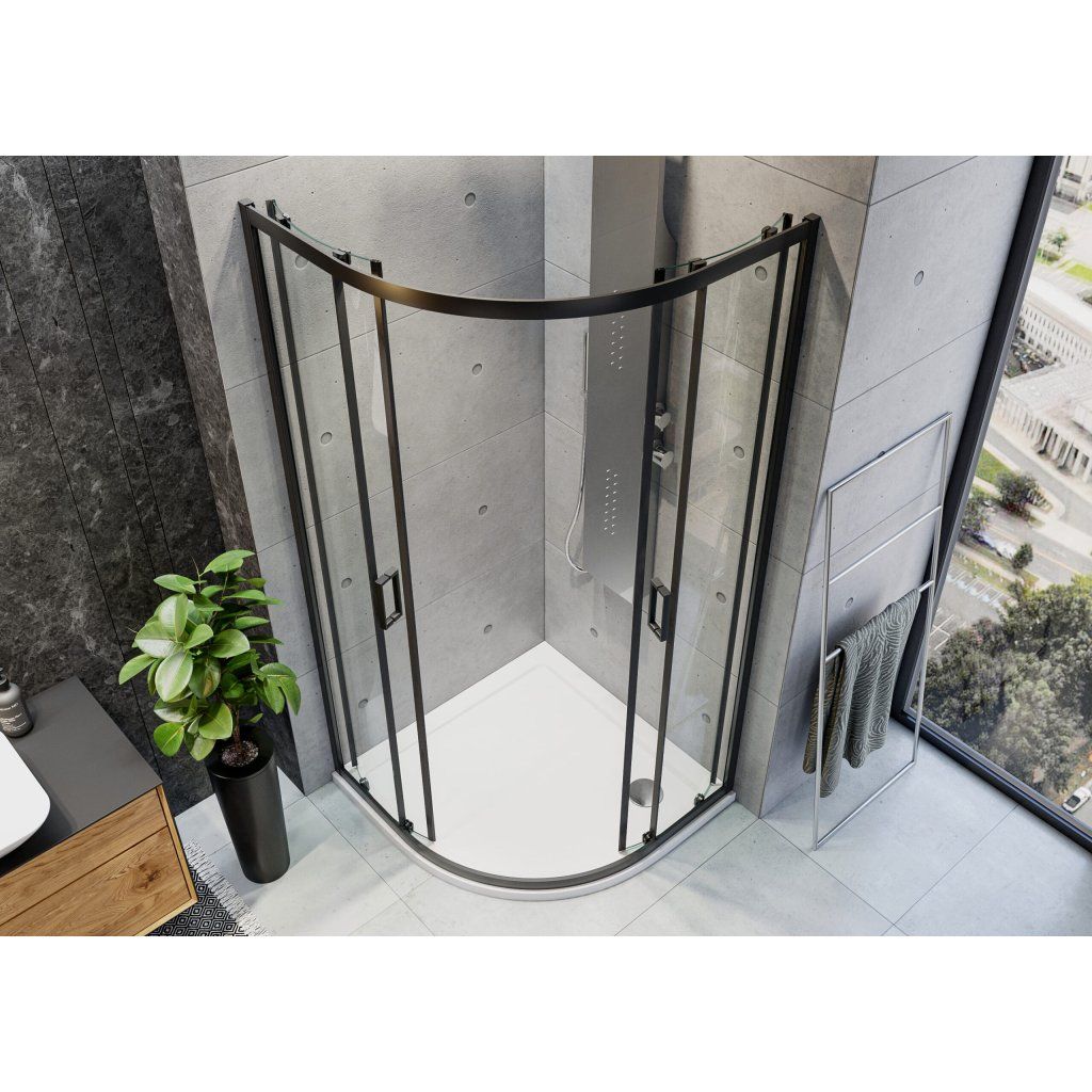 Štvrťkruhový sprchový kút Ability Black S4 80x80x190 cm