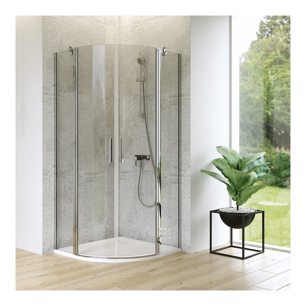 Elegantný sprchový kút s otváracími dverami. Hrúbka skla je 6mm s ochranným povrchom CleanPRO ktorý zabraňuje usadzovaniu vodného kameňa a nečistôt na skle. Výška sprchovej zásteny je 195 cm. Súčasťou balenia sú horné vzpery pre dokonalú stabilitu a kovové rúčky pre ľahké otváranie dverí.
