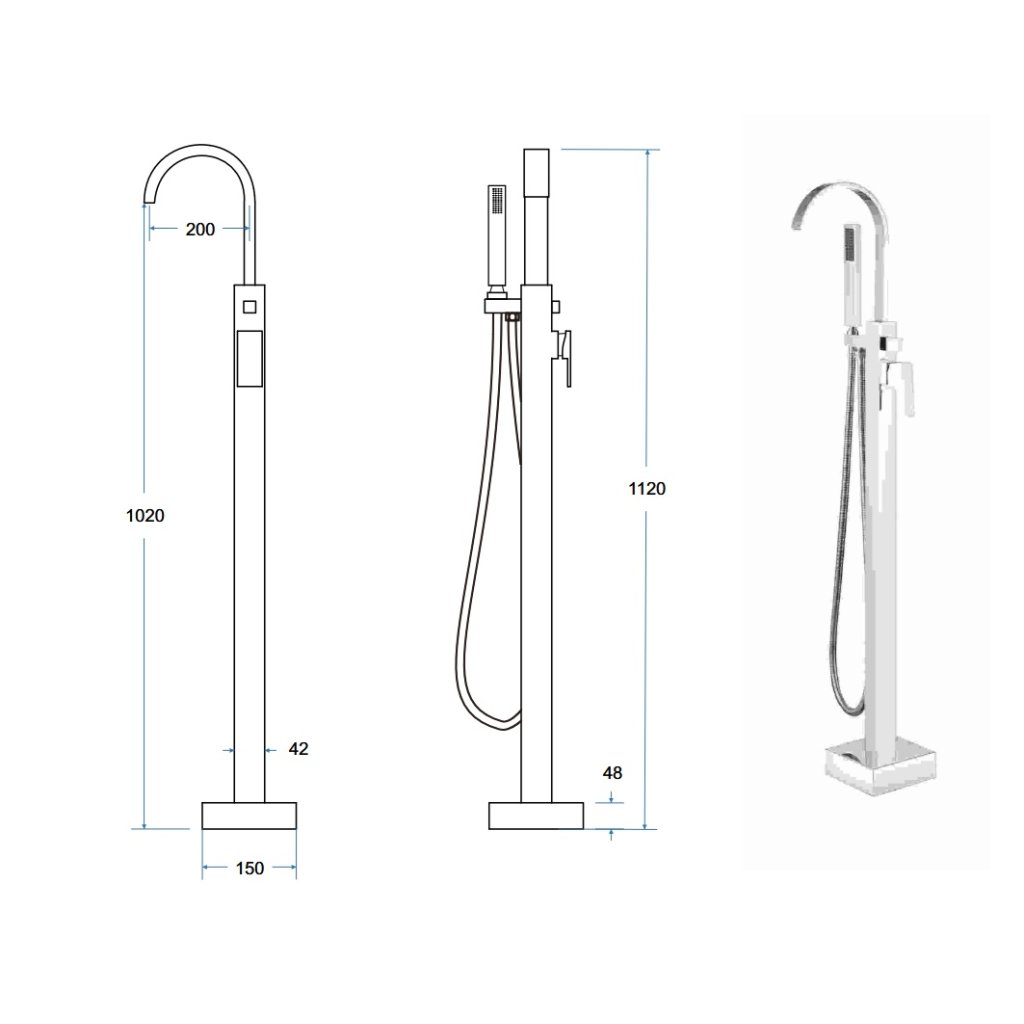 Vaňová batéria na podlahu Besco Modern II chróm