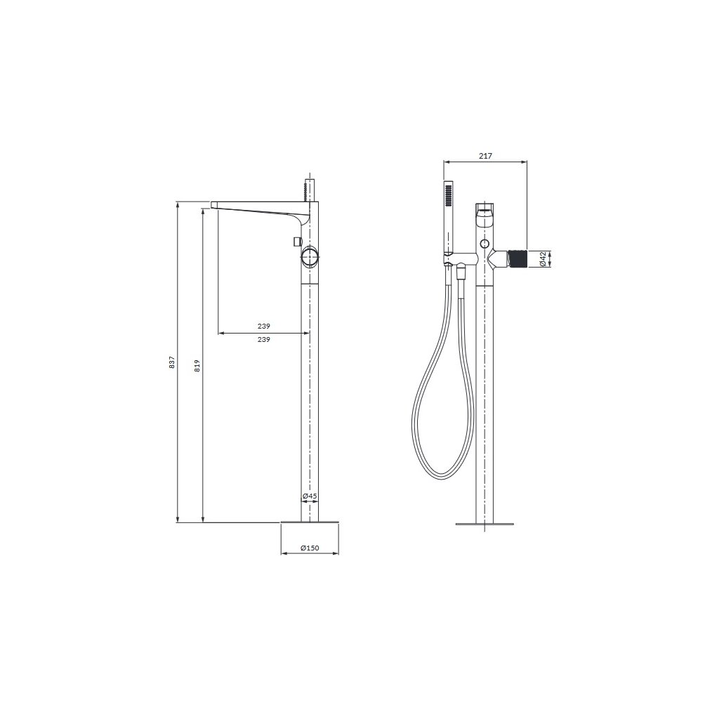 Vaňová batéria na podlahu Omnires CONTOUR chróm (CT8033CR)