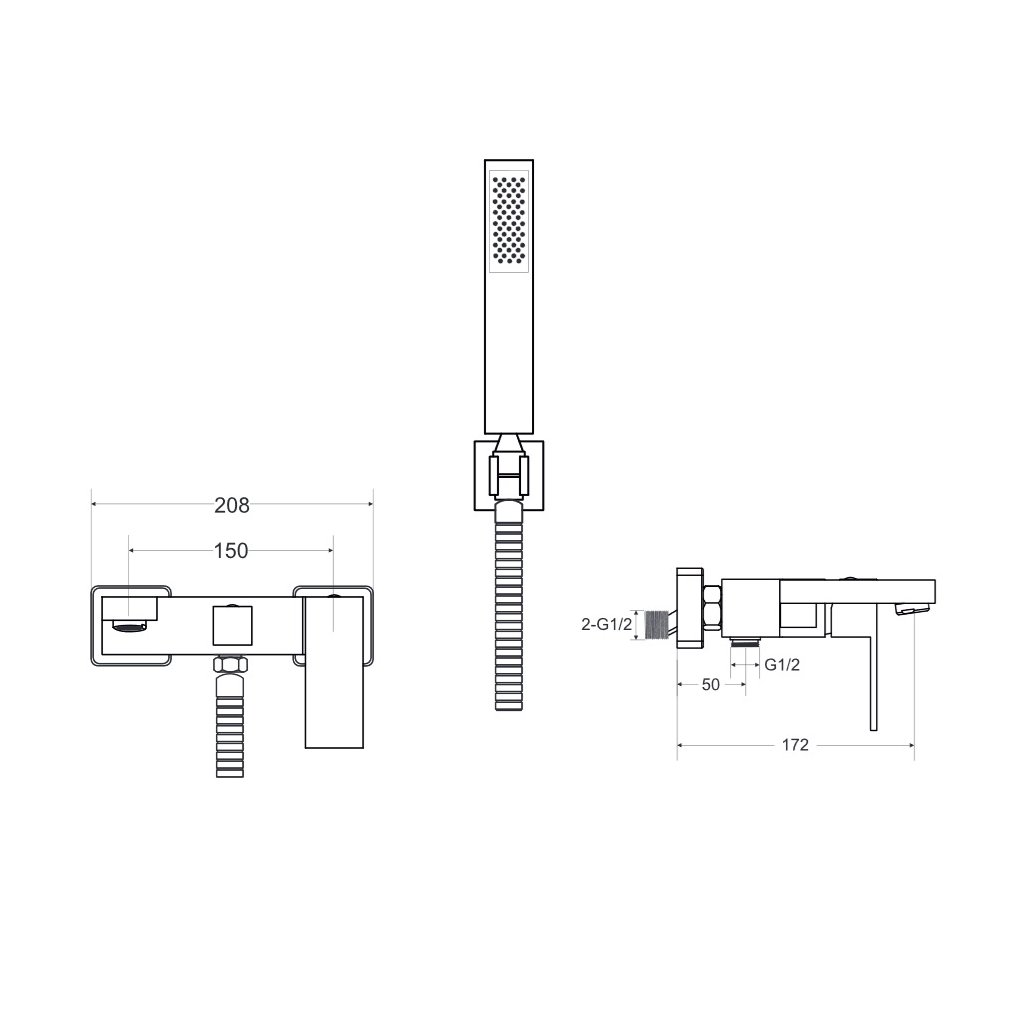 Súčasťou batérie je hadica, držiak ručnej sprchy a kovová ručná sprcha.