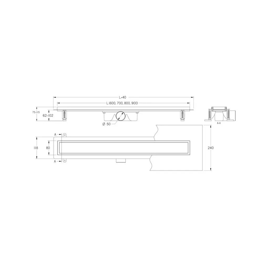 Montážne nožičky: súčasťou (vďaka nastaviteľnej výške žľabu je možné jednoducho namontovať odtok do podlahy ľubovoľnej výšky výtoku).