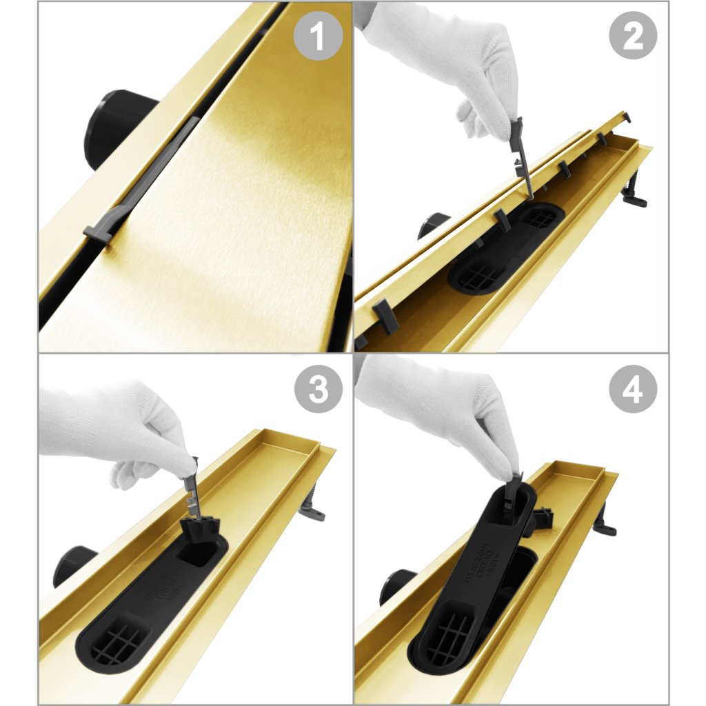 Rošt: GOLD- ZLATÝ, nerezový DUO (na nalepenie dlažby alebo alebo na celonerezovú časť).