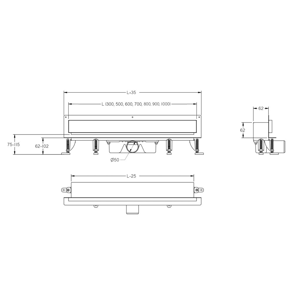 Montážne nožičky: súčasťou (vďaka nastaviteľnej výške žľabu je možné jednoducho namontovať odtok do podlahy ľubovoľnej výšky výtoku).