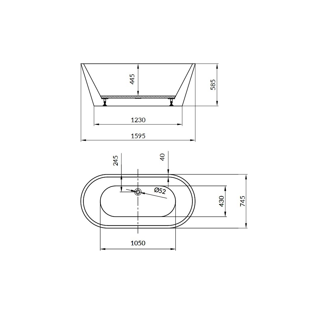 Voľne stojaca vaňa obsahuje chrómový click-clack sifón a rám s nastaviteľnými nožičkami.