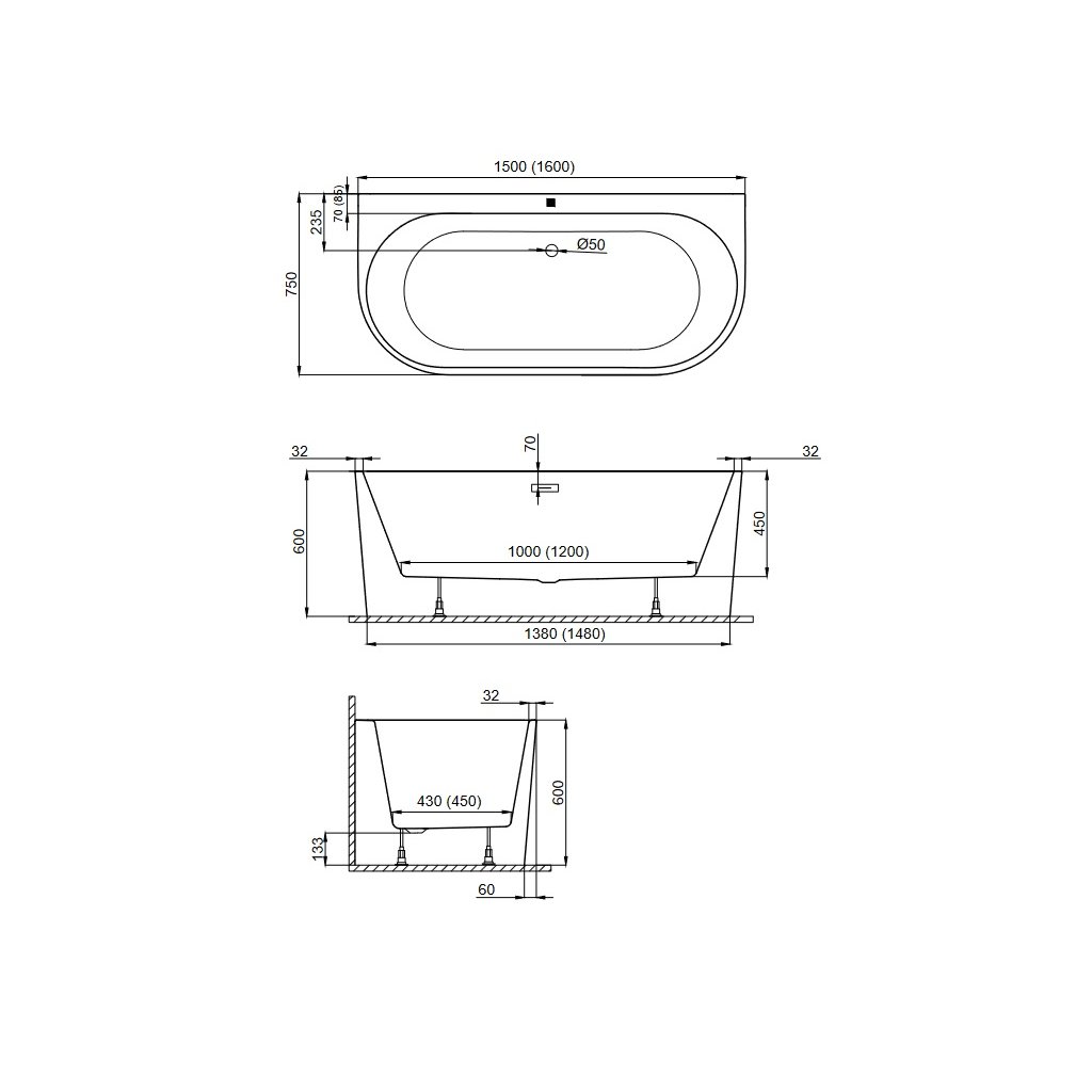 Moderná a priestranná voľne stojaca akrylátová vaňa Polimat SOLA 150x75 cm