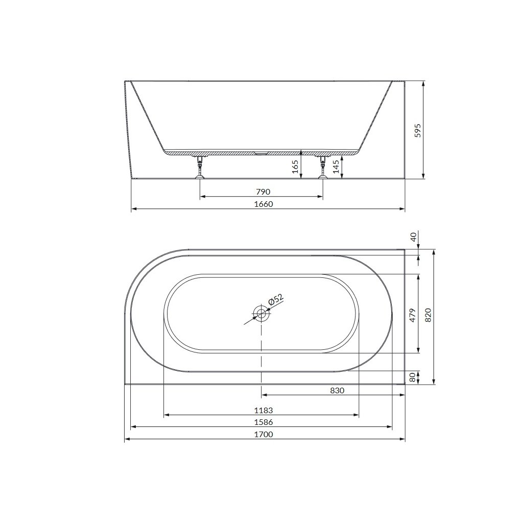 Súčasťou vane je rám s nastaviteľnými nohami a výpustom s chrómovanou zátkou.