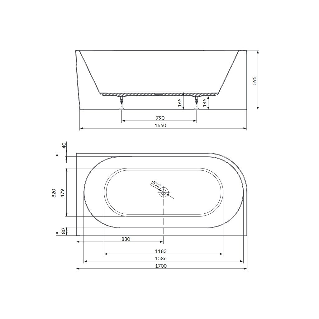 Súčasťou vane je rám s nastaviteľnými nohami a výpustom s chrómovanou zátkou.