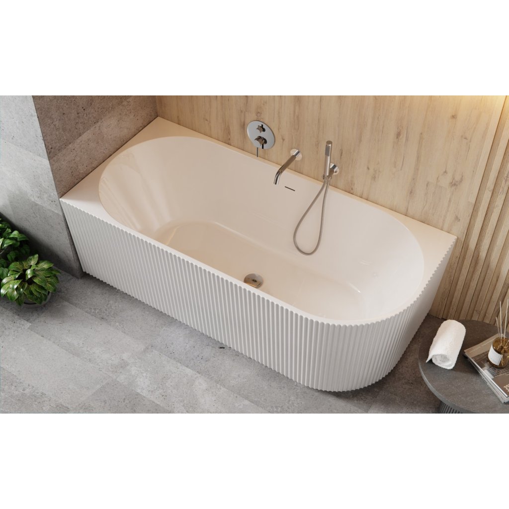 Voľne stojaca vaňa sa vyznačuje veľkým dizajnom a moderným vzhľadom. Tvar a dizajn sa vyznačuje ryhovanou textúrou ktorá je čoraz väčším hitom v kúpeľni.
