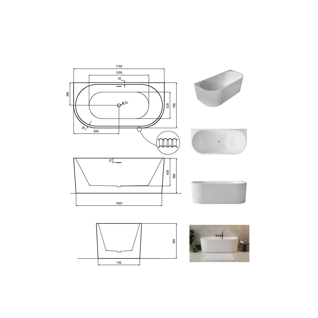 - voľne stojaca nástenná vaňa s ryhovanou textúrou