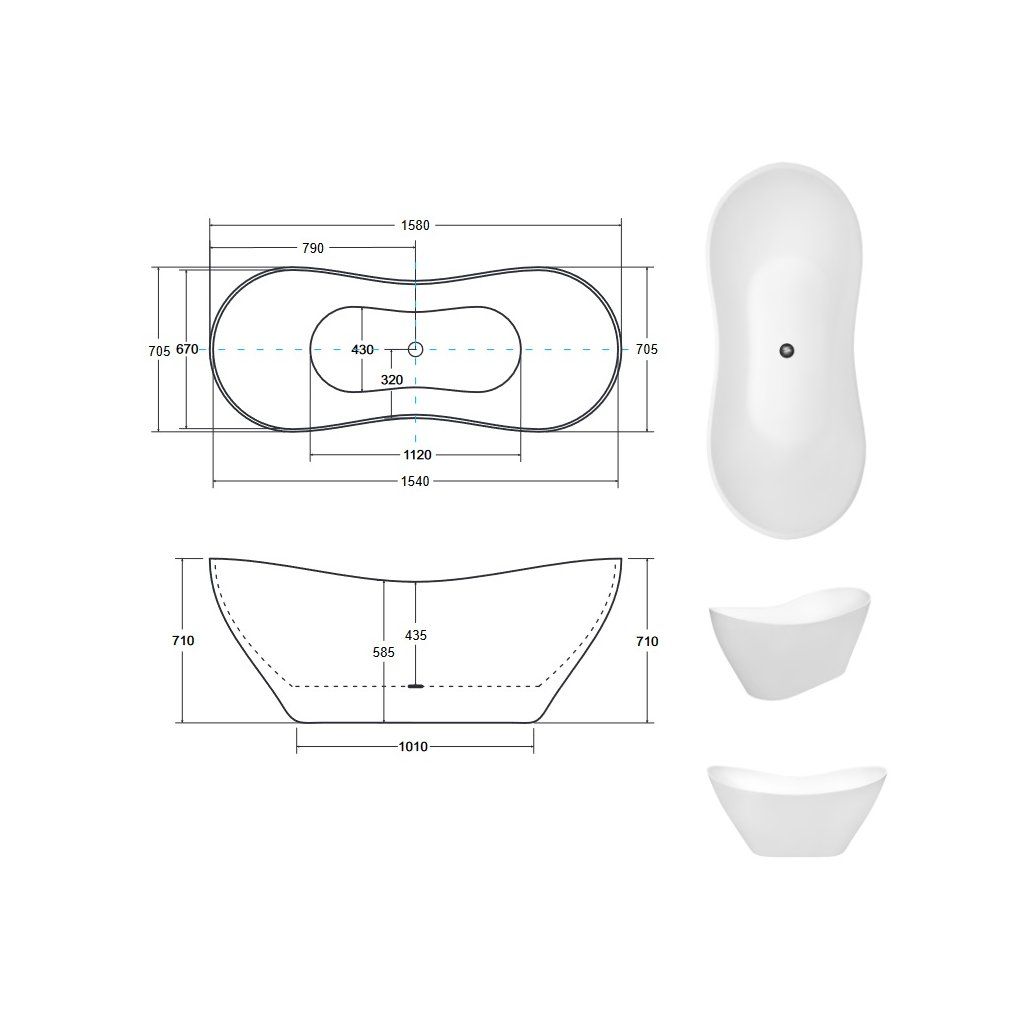 Voľne stojaca vaňa z liateho mramoru VIYA 160x70 cm