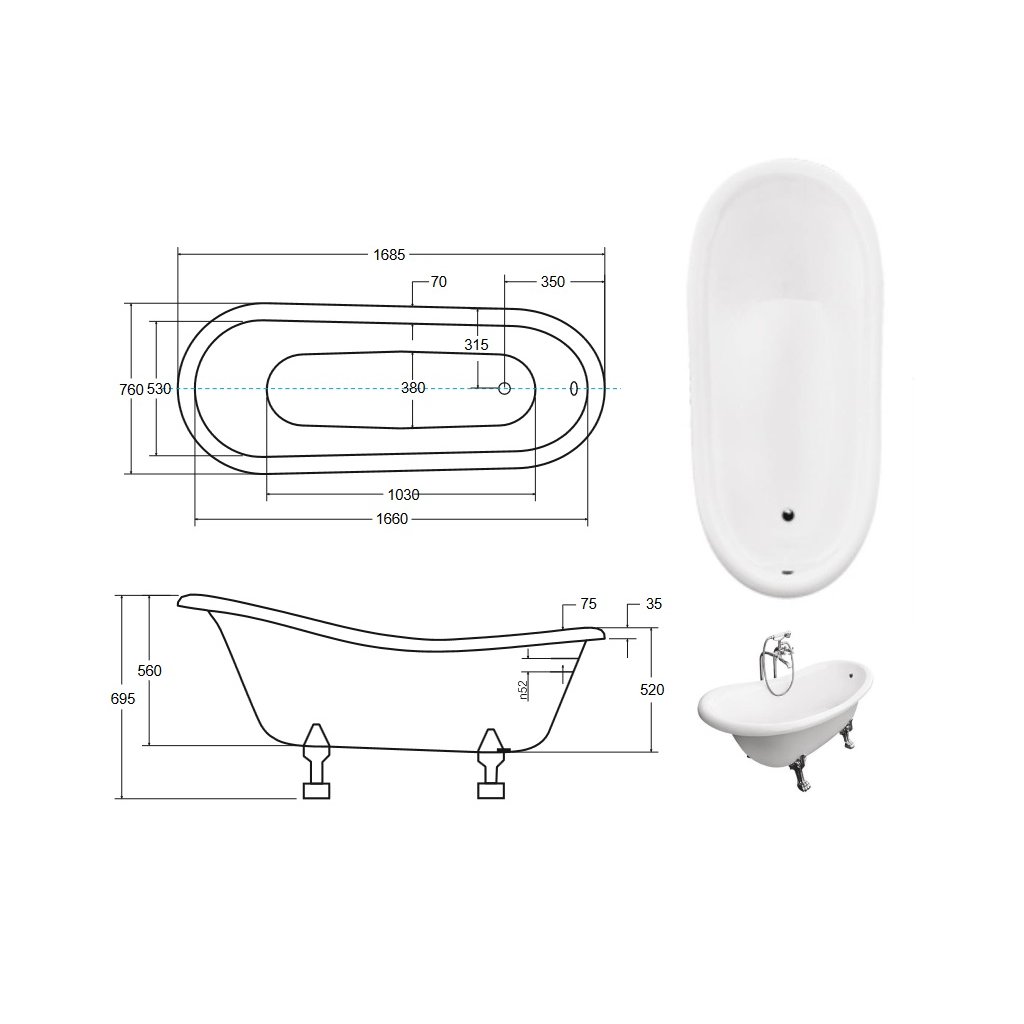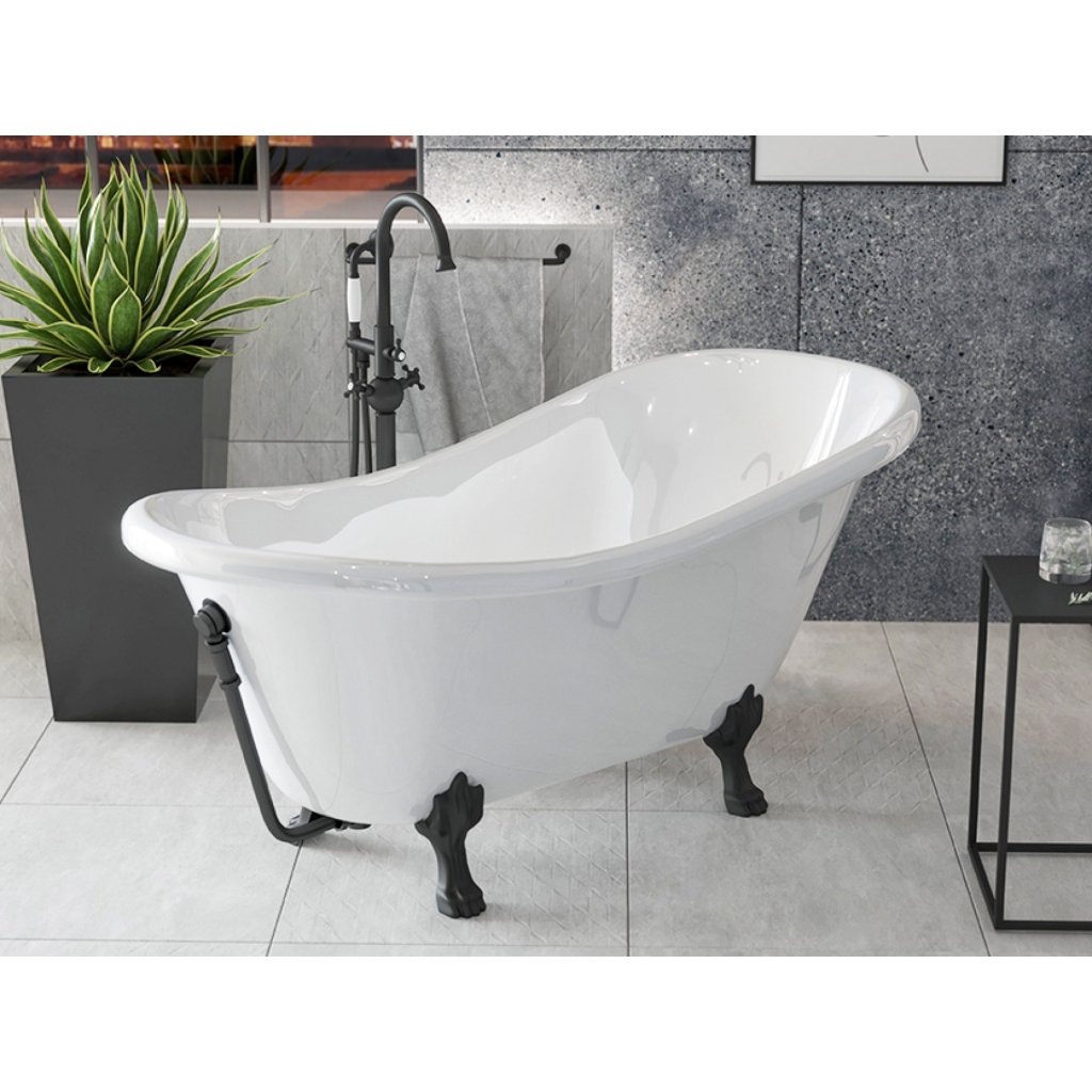 Voľne stojava akrylátová vaňa Besco OTYLIA 170x77 čierne matné nohy (#WKO-170W+CH)