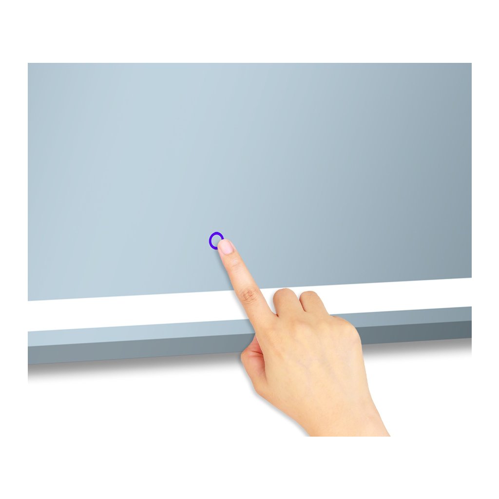 Dotykový LED spínač s funkciou stmievania a rozjasňovania, najmodernejší medzi senzormi. Vypínač zapne osvetlenie zrkadla jedným dotykom prsta a intenzita sa ovláda podržaním vypínača. Vyznačuje sa okrúhlym tvarom, biela s ikonou napájania. Vypínač je vždy v pohotovostnom režime a má vlastné LED podsvietenie, takže ho v tmavej miestnosti ľahko nájdete. Po vypnutí zrkadla si spínač uchová posledné nastavenia výkonu osvetlenia. Priemer dotyku je 1,5 cm. Moderné, inovatívne, praktické.