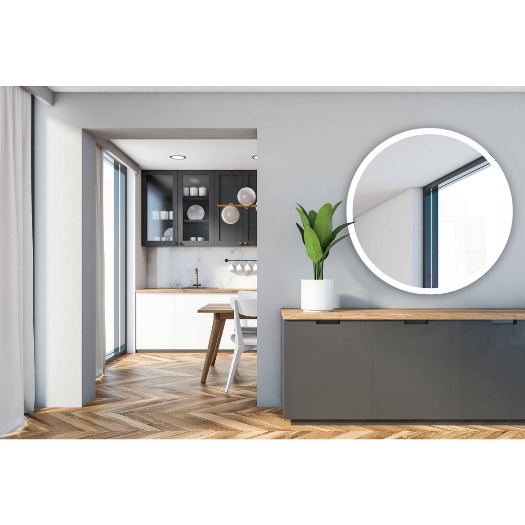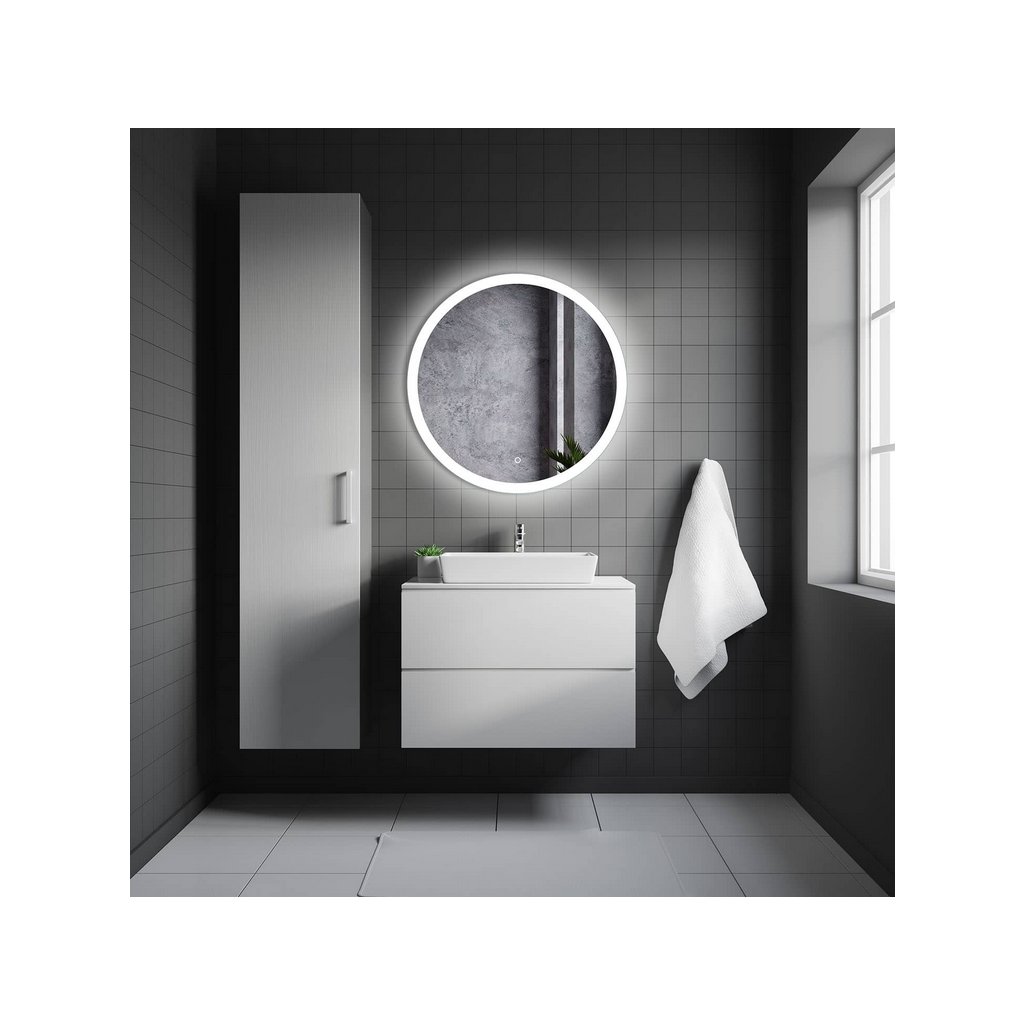 Mimoriadne módne zrkadlo so zabudovaným super LED osvetlením založené na najnovšej technológii rovnomerného rozloženia svetla. Pieskovaný a osvetlený vzor po obvode zrkadla umožňuje optimálne osvetlenie tváre pri každodennom používaní. Osvetlenie sa zapína nástenným vypínačom. Zrkadlo moderného minimalistického kruhového tvaru s priemerom 60 cm ako stvorené pre hľadačov nových trendov. Pôsobivý a starostlivo spracovaný model vysoko hodnotený našimi zákazníkmi.